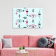 This retro Atomic Pink and Grey Pattern Wrapped Canvas is so awesome it will have you saying, “I can’t believe it’s not barkcloth!” The vintage inspired design is a new take on mid century modern styles. It offers all of the fun of finding a vintage product without having to schlep through antique stores and flea markets. Just when you think it can’t get more perfect, you learn that this whimsical design with its kitschy off kilter shapes in colors of pink, charcoal grey, black, and light grey even offers the option of customizing the background color. We’ve put it on a lovely shade of aqua, but a quick change of the background color, and… Presto! Change-o! The product has gone from subdued to daring! There are dots, starbursts, and diamonds in this piece of modern art. This homage to the 1950s will thrill your retro loving soul.