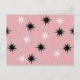 This Atomic Pink Starbursts Postcard has all of the mid century modern fun of your grandma’s kitchen, minus the sticky linoleum. The kitschy design features a pink background with gold speckles and randomly placed starbursts in black and two shades of pink. This vintage inspired pattern is mod enough to be stylish and retro enough to be classic. Serve up some love with this minimalist design.