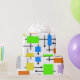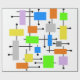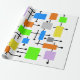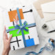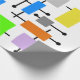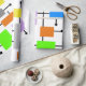 This wrapping paper is covered with a mid-century modern design of a variety of retro rectangles connected together. Colourful and fun!