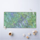 A modern take on mid-century modern : overlapping atomic shapes overlaying a digital crosshatch in bright greens and fresh blues.