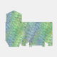 A modern take on mid-century modern : overlapping atomic shapes overlaying a digital crosshatch in bright greens and fresh blues.