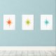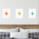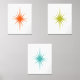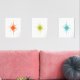 Add a burst of colour to your walls with this fabulous mid century modern art set. These prints feature an orange, avocado green, and turquoise blue starburst.