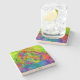 The washed-out effect of this tie-dye design on natural travertine stone is reminiscent of faded jeans making it the perfect fit for your hippie or boho-chic decor. You may choose marble, sandstone, or limestone instead for a totally different effect. The peace sign / symbol on this stone coaster can also be removed and/or replaced with an image of your own.