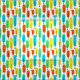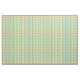 This fabric has a mid-century modern design of long ovals in yellow, orange, green, and turquoise with black lines with circles on the ends.