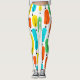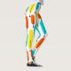 These leggings have a mid-century modern design of long ovals in yellow, orange, green, and turquoise with black lines with circles on the ends.