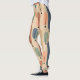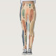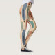 These leggings have a mid-century modern design of long ovals in peach, green, blue, teal, and light brown with black lines with circles on the ends.