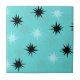 This Atomic Turquoise Starbursts Ceramic Tile has all of the mid century modern fun of your grandma’s kitchen, minus the sticky linoleum. The kitschy design features a green background with gold speckles and randomly placed starbursts in black, and shades of aqua and turquoise. This vintage inspired pattern is mod enough to be stylish and retro enough to be classic. Serve up some love with this minimalist design.