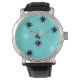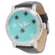 This Atomic Turquoise Starbursts Leather Watch has all of the mid century modern fun of your grandma’s kitchen, minus the sticky linoleum. The kitschy design features a turquoise background with gold speckles and randomly placed starbursts in black, turquoise, aqua. This vintage inspired pattern is mod enough to be stylish and retro enough to be classic. Serve up some love with this minimalist design.