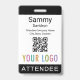 Personalize our professional attendee event badge with your logo, attendee name, and other custom text. It's pvc plastic and available with a lanyard, clip, or a retractable reel. Designed in black and other colours with a modern minimalist design by MISOOK. All colours are customizable. You can optionally add content to the back side. Easily customize the attendee title (VIP guest, visitor, speaker, etc). No minimum order quantity and no setup fee.