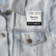 Easily personalize our square attendee name badge with your event logo, attendee name, or other custom text. It attaches with a safety pin back. Designed in black and other colours (all colours are customizable). Our square buttons are 2 inch x 2 inch. Made in USA. No minimum order quantity and no setup fee.