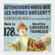 Vintage Canadian World War I military recruitment poster appealing to French-speaking Canadians to defend France.