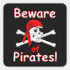 Illustration graphique du crâne et des os de pirates avec le texte "Attention aux pirates" sur un autocollant. OEuvre originale : Copyright Charmaine Paulson