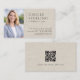 Linen-style business card for attorneys at law with photo and QR code. Designed so clients can quickly save your contact details or access your website or consultation link. Ideal for client meetings, legal consultations, and referrals. Editable text and QR destination. Clean print-ready layout.