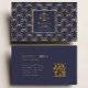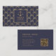 Attorney QR Code Dark Blue Gold Bee Laurel Pattern Business Card