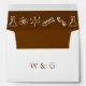 Bring touch of geeky, science-themed fun to your event with custom envelopes featuring a deep chocolate planetary model atom on the front in the bottom right corner, a matching atom on the back flap, and initials that you can change to match your own on the back underneath. A final note of decoration can be found on the inside with a rich brown interior decorated with a pattern of planetary model atoms, beakers, DNA strands, and test tubes adorning the envelope just under the flap where the design will add a nice accent as your guests retrieve their invitation. Be sure to check out the full Attractive Forces in Chocolate collection to find more products, including invitations, guest books, return address labels, and even favour boxes, with matching designs that will allow for a truly coordinated wedding or special event.