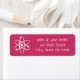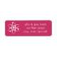 A raspberry pink return address label is decorated with a white planetary model atom on the left and sample text on the right for customizing to make it your own.