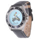 My husband loves the watch, he likes the dial, the graphics, the band, and it keeps perfect time.
