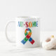 Autism awareness design features awareness ribbon made of red, blue, green and yellow puzzle pieces. Design says "au-some" as a pun for awesome autistic individuals or anyone on the autism spectrum. Au-some autism design is perfect for child, boy or girl with autism or Asperger's Syndrome. Perfect for Autism Awareness Month in April.