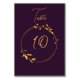 Aubergine background with golden hued floral circle and calligraphy lettering.