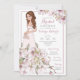 Floral bridal shower invitation features customizable blonde, brown, auburn hair and skin tones in a gorgeous flower wedding gown.