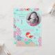 Little mermaid first birthday invitation card with underwater creatures.