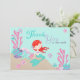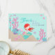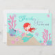 Sweet little mermaid under the sea with fishes, sea shells, anemone, coral reef, and star fish Thank You card.