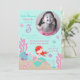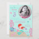 Little mermaid third birthday invitation card with underwater creatures.