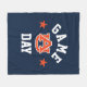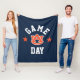 This cozy fleece blanket proudly showcases support for Auburn University on game day! It features the iconic Auburn "AU" logo prominently displayed at its centre, vibrant in its traditional orange and blue. Above and below the logo, the words "GAME" and "DAY" are boldly presented in white, arched lettering, perfectly capturing the excitement of game day. Two orange stars flank the 'AU' logo, adding to the energetic display. The blanket's bold blue background emphasizes the team colours, making it ideal for staying warm while cheering on the Auburn Tigers, whether at home or at the stadium.