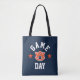This spirited tote bag proudly showcases support for Auburn University on game day! Its bold navy blue background sets the stage for the iconic Auburn "AU" logo, prominently displayed at its centre, vibrant in its traditional orange and blue. Above and below the logo, the words "GAME" and "DAY" are boldly presented in white, arched lettering, perfectly capturing the excitement of game day. Two vibrant orange stars with white outlines flank the 'AU' logo, adding to the energetic display. This impactful and recognizable design is ideal for carrying essentials to games, classes, or everyday errands, embodying the competitive spirit and strength of the Auburn Tigers.