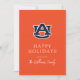 This design pattern features Auburn University's emblematic "AU" logo in bold navy blue with an orange outline. The word "Auburn" appears in stylized, uppercase navy blue letters with orange accents, providing a prominent contrast against the white background. An additional graphic of a tiger's eyes, enclosed in an oval shape with an orange border, reinforces Auburn’s iconic mascot. Scattered across the design are minimalist starburst shapes and small dots in navy blue, adding a festive and dynamic touch that complements the university's spirit and colours.