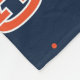 This design pattern features Auburn University's emblematic "AU" logo in bold navy blue with an orange outline. The word "Auburn" appears in stylized, uppercase navy blue letters with orange accents, providing a prominent contrast against the white background. An additional graphic of a tiger's eyes, enclosed in an oval shape with an orange border, reinforces Auburn’s iconic mascot. Scattered across the design are minimalist starburst shapes and small dots in navy blue, adding a festive and dynamic touch that complements the university's spirit and colours.