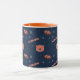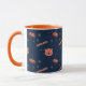 This design pattern features Auburn University's emblematic "AU" logo in bold navy blue with an orange outline. The word "Auburn" appears in stylized, uppercase navy blue letters with orange accents, providing a prominent contrast against the white background. An additional graphic of a tiger's eyes, enclosed in an oval shape with an orange border, reinforces Auburn’s iconic mascot. Scattered across the design are minimalist starburst shapes and small dots in navy blue, adding a festive and dynamic touch that complements the university's spirit and colours.