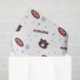 This design pattern features Auburn University's emblematic "AU" logo in bold navy blue with an orange outline. The word "Auburn" appears in stylized, uppercase navy blue letters with orange accents, providing a prominent contrast against the white background. An additional graphic of a tiger's eyes, enclosed in an oval shape with an orange border, reinforces Auburn’s iconic mascot. Scattered across the design are minimalist starburst shapes and small dots in navy blue, adding a festive and dynamic touch that complements the university's spirit and colours.