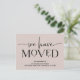 Ces annonces de déménagement sérieusement modernes présentent un texte noir élégant et ornemental sur une couleur arrière - plan beige neutre et rose pour un nouveau look encore intemporel et élégant. Une façon élégante de laisser les amis et la famille que vous avez déménagé dans une nouvelle maison!