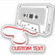Audio cassette illustration. Loose tape forming a heart shape. Custom text.