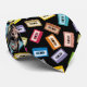 Colourful audio cassettes seamless pattern. Custom background colour.