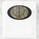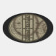 An oval badge with a chain link fence overlay a human brain wearing headset. In the centre of the badge is a text message that read, Audio Hazard. The over all image is done in a wood grain filter that gives it a vintage look.