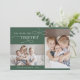 FAIRE-PART DE NAISSANCE AUDREY Green Christmas Card. Personnalisez l'avant de la carte avec 2 photos, votre nom de famille et l'année. Personnalisez le dos avec un accueil de vacances ou des nouvelles de famille en option, et votre nom de famille.