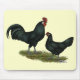 The cup like combs of Augsburger chickens are unusual and attractive as well as their glossy black plumage. They lay white eggs.