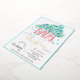 Framed with a bright teal border, this invitation stands out as a piece of art, making it a beautiful keepsake for both you and your guests. The details of your event are presented in a chic and easy-to-read format, ensuring all the important information is clearly communicated while maintaining the invitation’s stunning visual appeal.