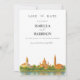 This DIY PRINTABLE save the date features a watercolor painting of the St Augustine city skyline. Use this template to edit all wording, font, font color, and the background color to match your event style. Add your own photo or graphics easily to this template.