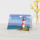 Celebrate your aunt's birthday with this enchanting coastal-inspired greeting card. Painted in vibrant watercolors, it depicts a beach scene, complete with waves, sun-kissed sands, and a captivating red and white lighthouse. Show her how her presence shines brightly and adds beauty to your life.