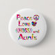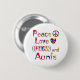 Share the love for your Aunt with this colourful design with a peace sign, heart, and the words Peace Love Hugs and Aunts.