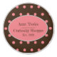 A chocolate brown background with pale pink polka dots... pale pink centre oval shop sign in vintage style with chocolate brown antiqued lettering... silver grey accents... reads... "Aunt Teek's Curiosity Shoppe ... Est. 2022"...