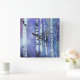 Aurora Among the Birch. Hints of aurora-like colours peek through the silhouetted birch trunks, bringing an enchanting glow to this wintry scene. The fine balance between abstraction and realism makes this piece a striking conversation starter.