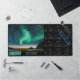 Tapis de bureau professionnel 2025 personnalisable avec votre entreprise, ou logo de l'organisation. (long logo sera plus beau, mais pas obligatoire) L'illustration est un tableau de Fantabuloustef représentant les lumières du nord au coucher du soleil sur la mer avec des tons verts et oranges. Parfait pour souhaiter une bonne année 2025 à vos clients, clients, fournisseurs... Un support promotionnel très intéressant, car il sera visible tous les jours sur les bureaux.