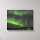 Impression en toile de rayons verts d'aurores boréales (aurores boréales) dans le ciel nocturne au-dessus d'un lac gelé en Laponie.