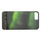 Mobile iphone 7 case with green rays of aurora borealis (northern lights) in the night sky over a frozen lake in Lapland.