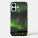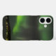 Mobile phone case with green rays of aurora borealis (northern lights) in the night sky over a frozen lake in Lapland.