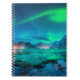 Aurora borealis over the sea coast, snowy mountain notebook